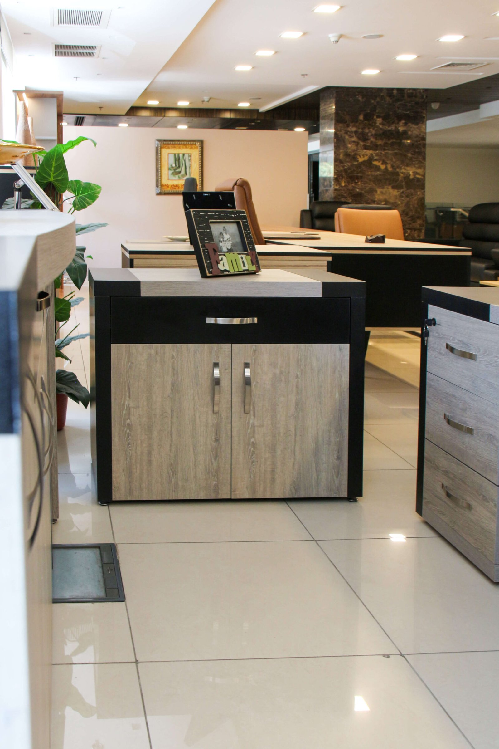 יחידת צד עם 1 מגירה סגירה רכה, ארון עם 2 דלתות וצירים הידראוליים (סגירה רכה), עשויה MFC, עובי החלק העליון 50 מ"מ, מכוסה במלמין משני הצדדים, עם ריפוד PVC בקצוות להגנה נוספת.